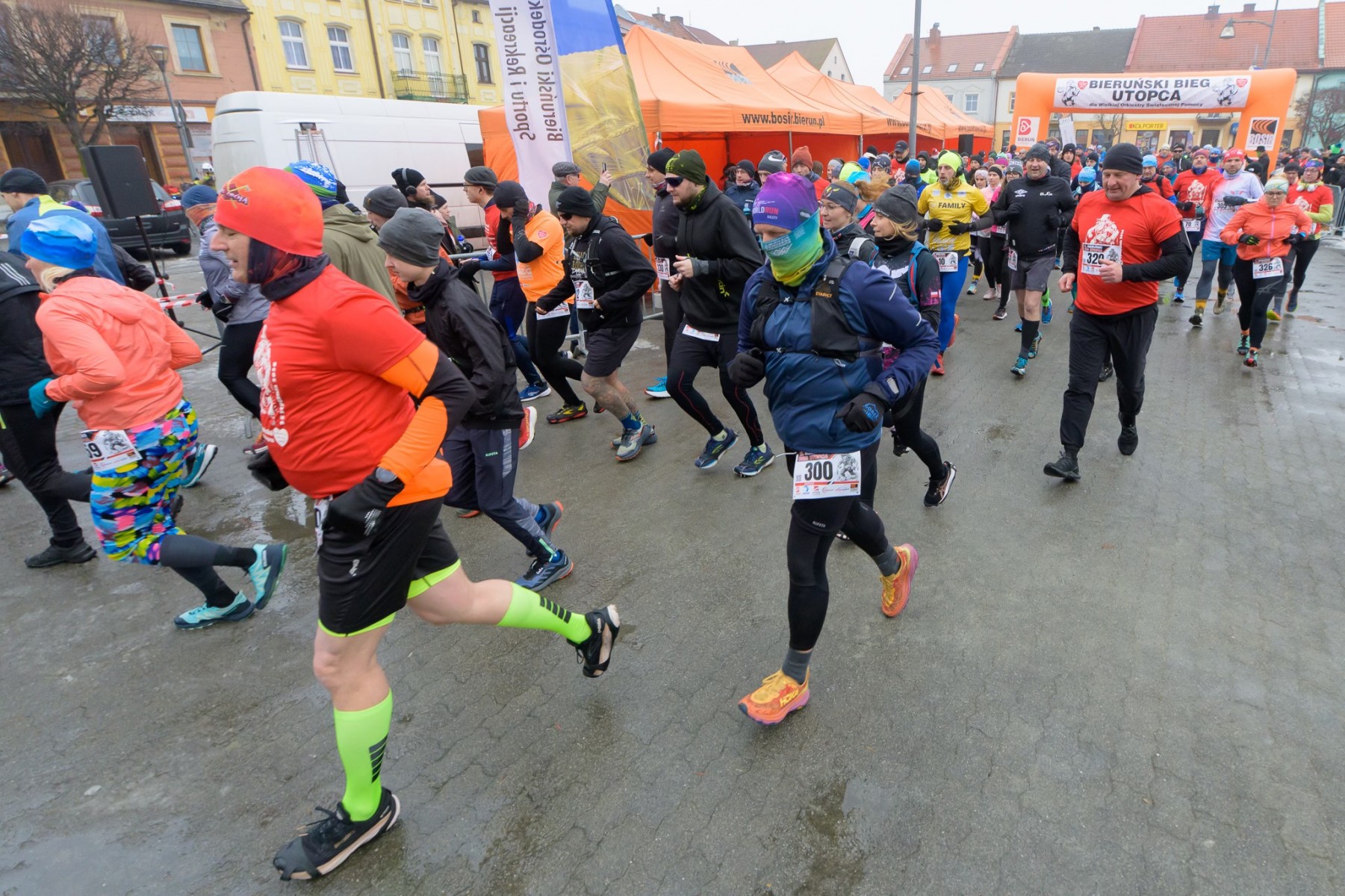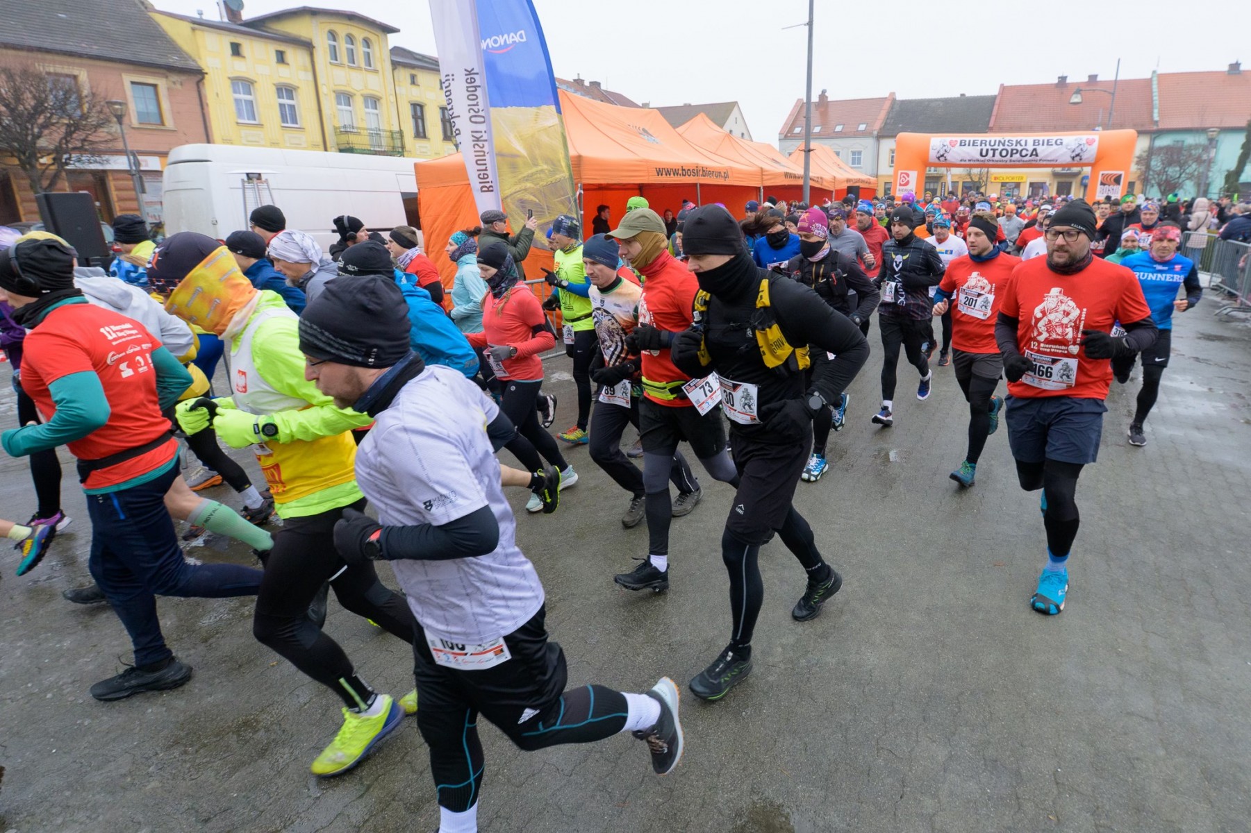Z pewnością nie były to wymarzone warunki do bicia życiowych rekordów, ponieważ biegacze musieli zwracać uwagę przede wszystkim na swoje bezpieczeństwo (wielu korzystało z nakładek antypoślizgowych i raczków). Ale i tak najlepsi wybiegali imponujące czasy, a niektórzy podjęli się dodatkowych wyzwań. Kilka osób podjęło próbę pokonania trasy ultra (dziesięć 17-kilometrówych pętli), a udało się to dwóm zawodnikom. Grupa biegaczy reprezentujących służby mundurowe pokonała dystans 17 kilometrów z dodatkowym obciążeniem (10-kilogramowymi plecakami). Cóż, Bieruński Bieg Utopca to nie jest impreza dla lubiących wygody…