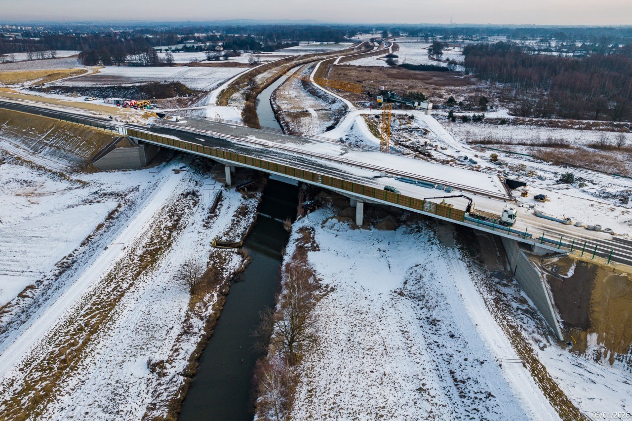 W połowie stycznia powinny rozpocząć się odbiory obiektów inżynieryjnych. Tak zapowiada kierownik budowy z firmy STRABAG Marcin Warchoł. Te obiekty inżynieryjne to most nad ciekiem Młynówka w ciągu łącznicy (MS-15), węzeł Bieruń (WD-14), a także przejazd nad S1 w ciągu ul. Bijasowickiej (WD-16) i wreszcie most nad Gostynią w ciągu samej trasy ekspresowej (MS-17).