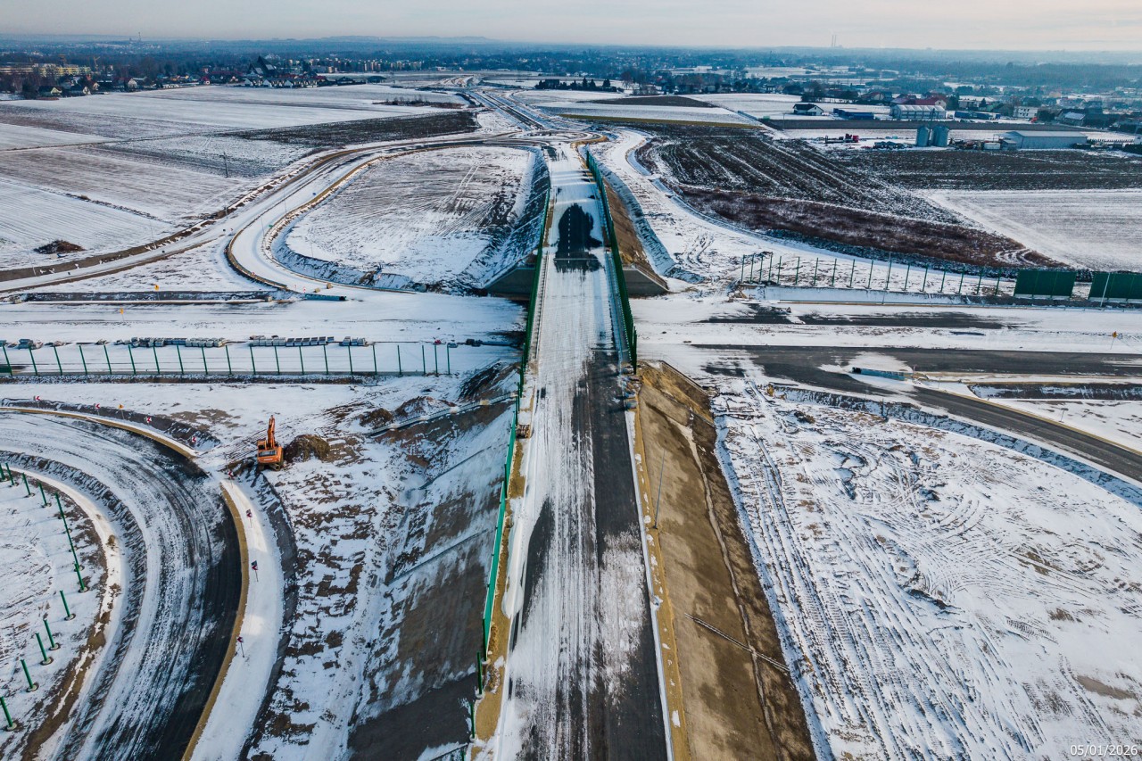 Budowa drogi S1 - Okolice Bijasowic i Zarzyny - styczeń 2026 (zdjęcia z lotu ptaka) (16)