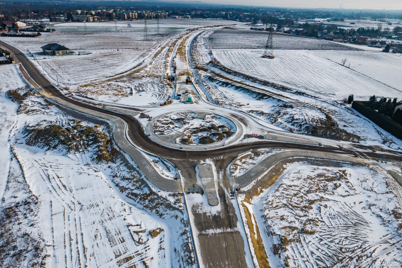 Budowa drogi S1 - Okolice Bijasowic i Zarzyny - styczeń 2026 (zdjęcia z lotu ptaka) (12)