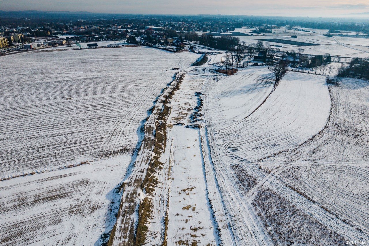 Budowa drogi S1 - Okolice Bijasowic i Zarzyny - styczeń 2026 (zdjęcia z lotu ptaka) (3)