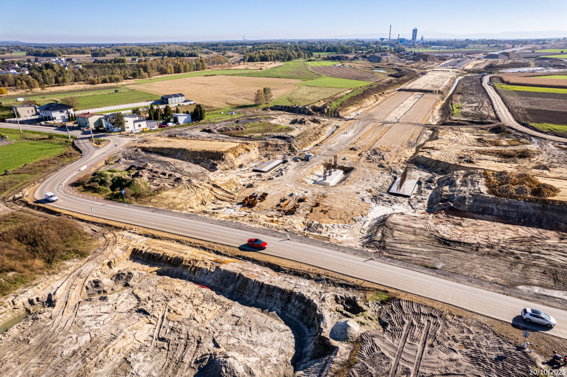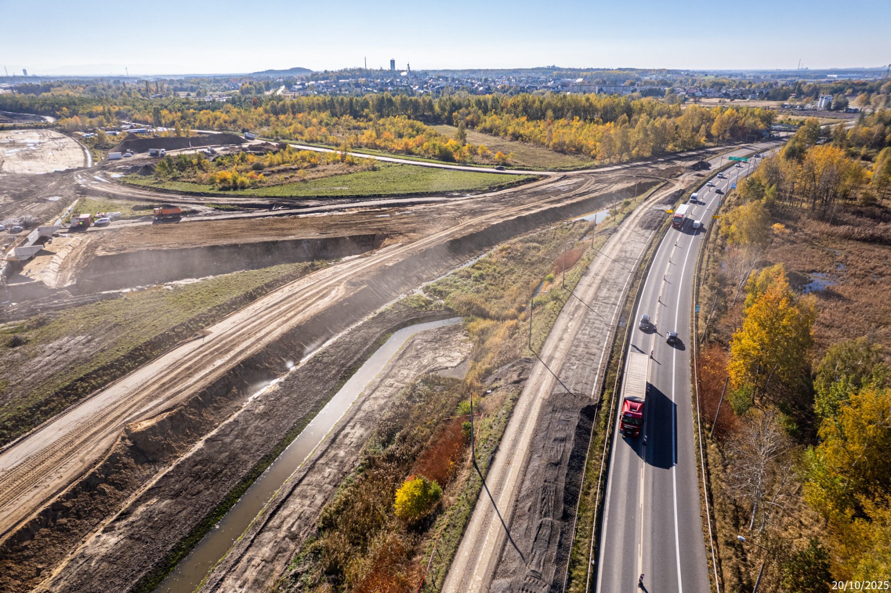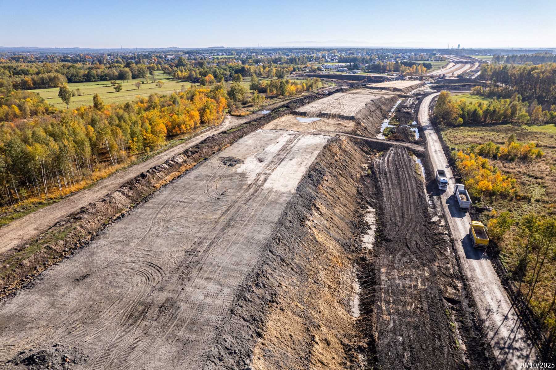 Budowa drogi S1 - Kosztowy - Bieruń - 23 października 2025 (zdjęcia z lotu ptaka)