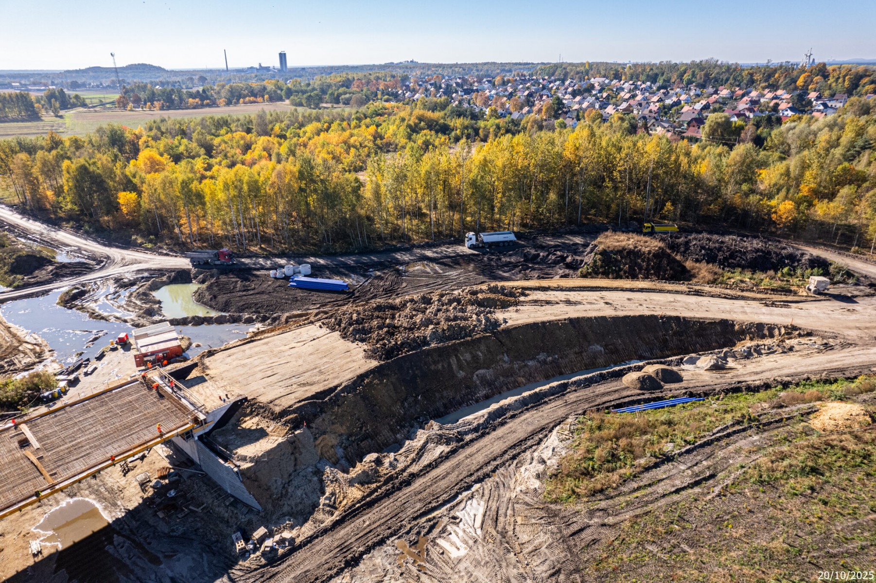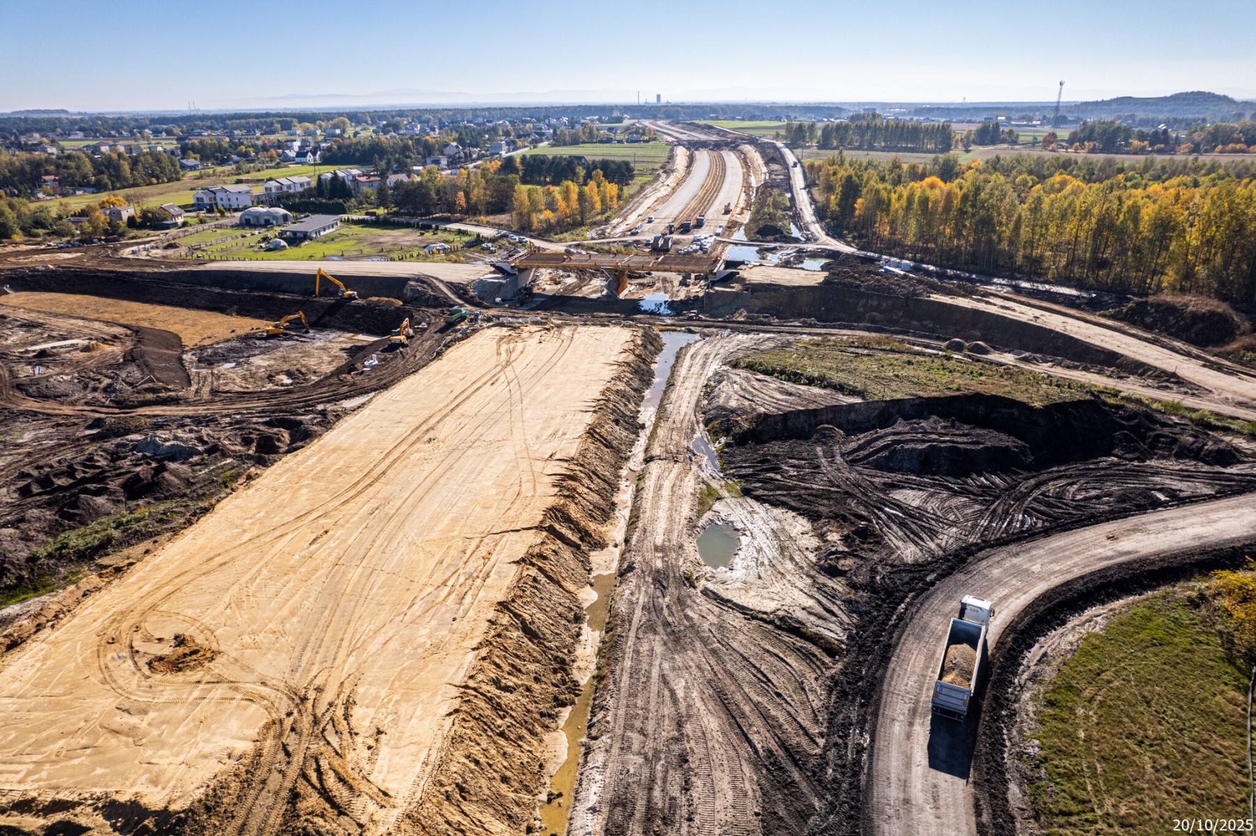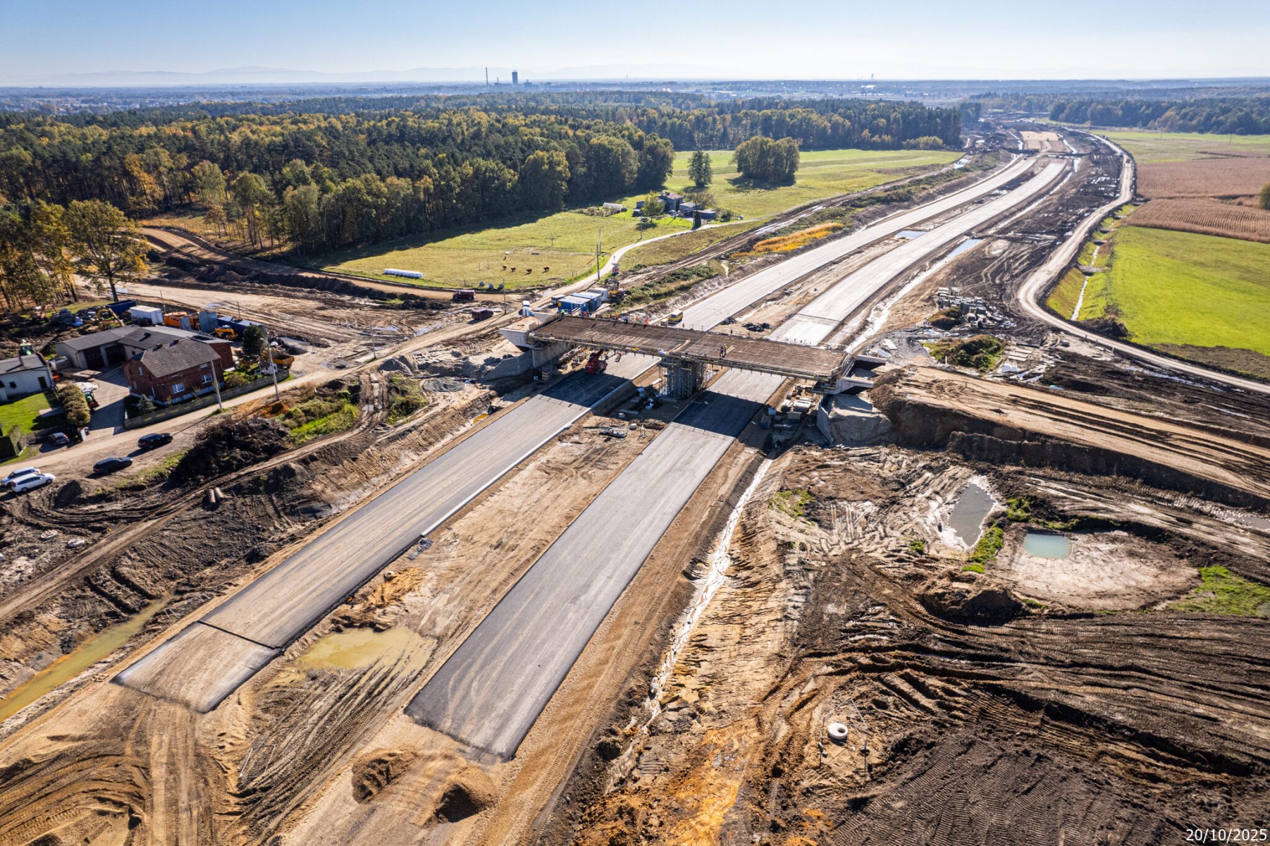 Budowa drogi S1 - Kosztowy - Bieruń - 23 października 2025 (zdjęcia z lotu ptaka)