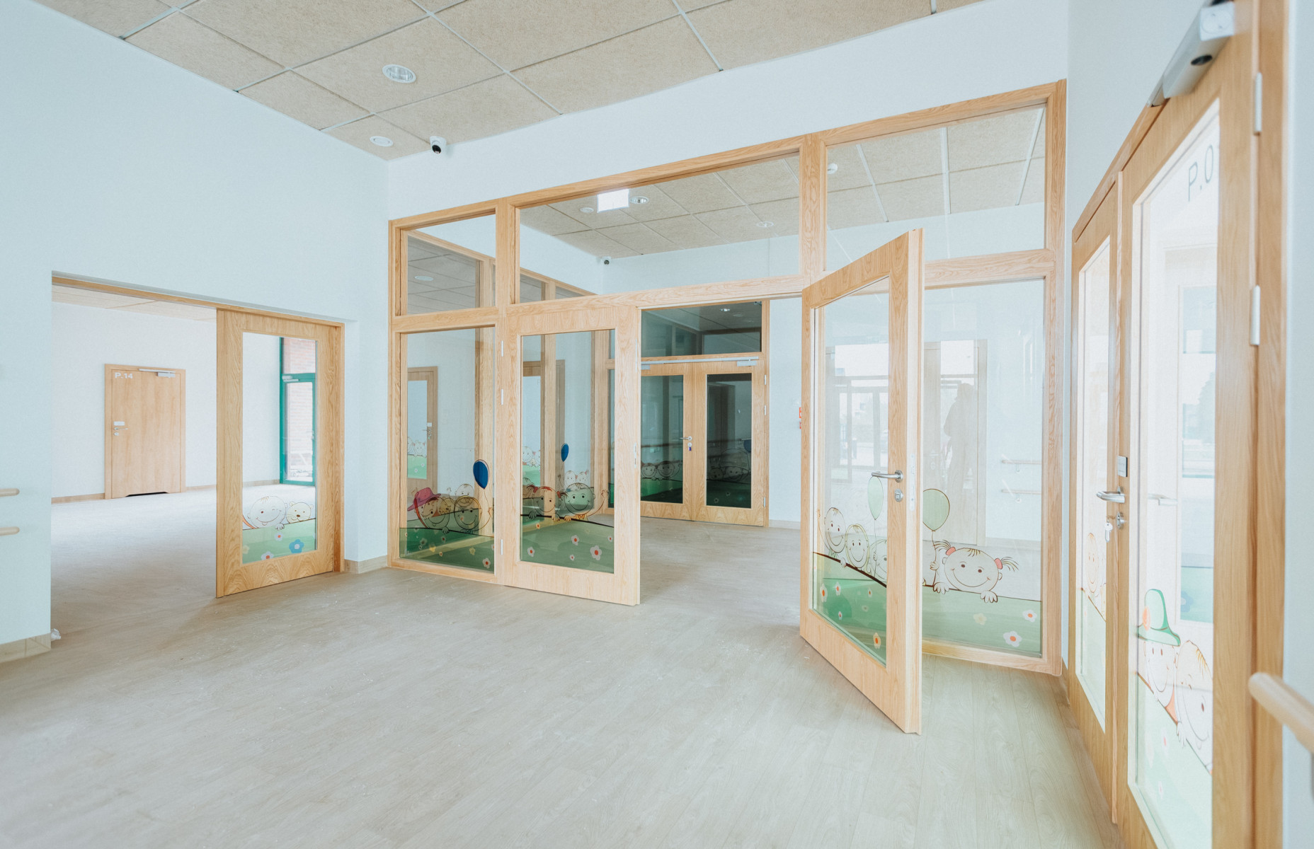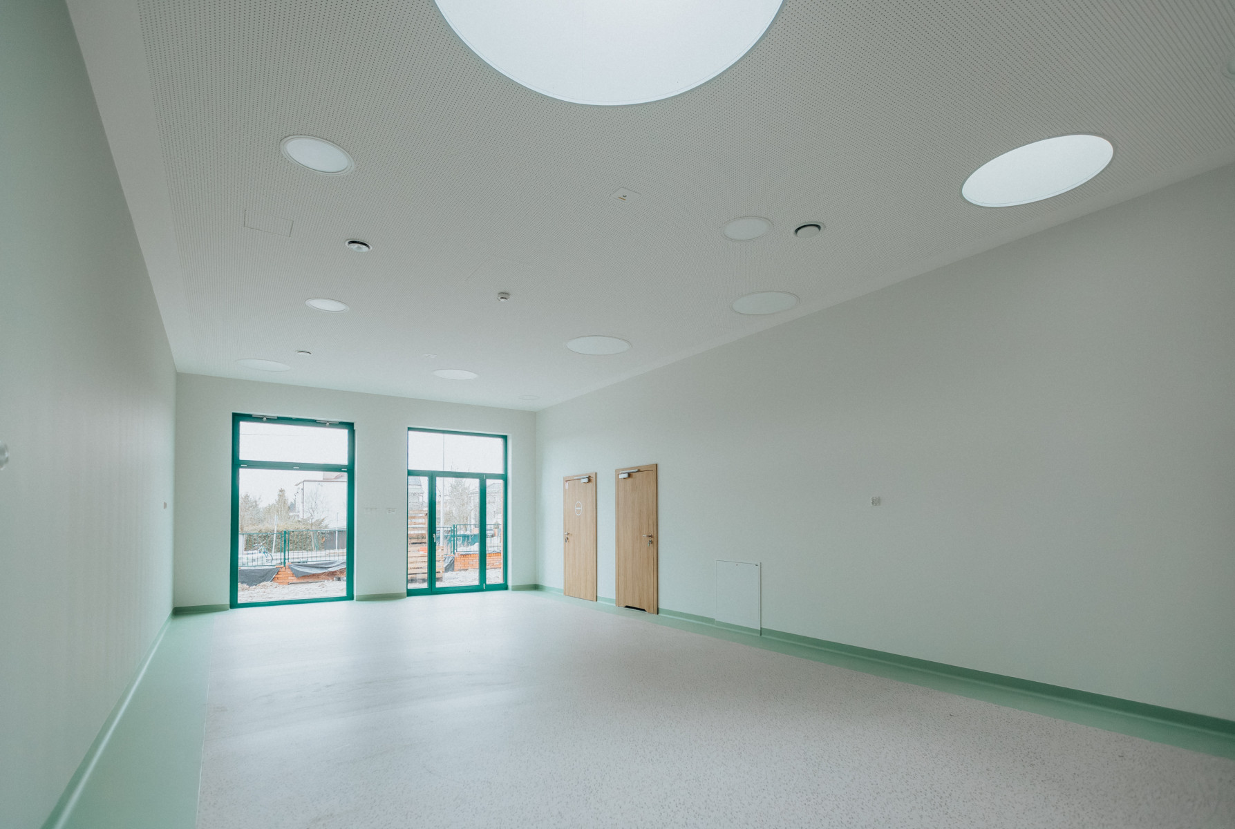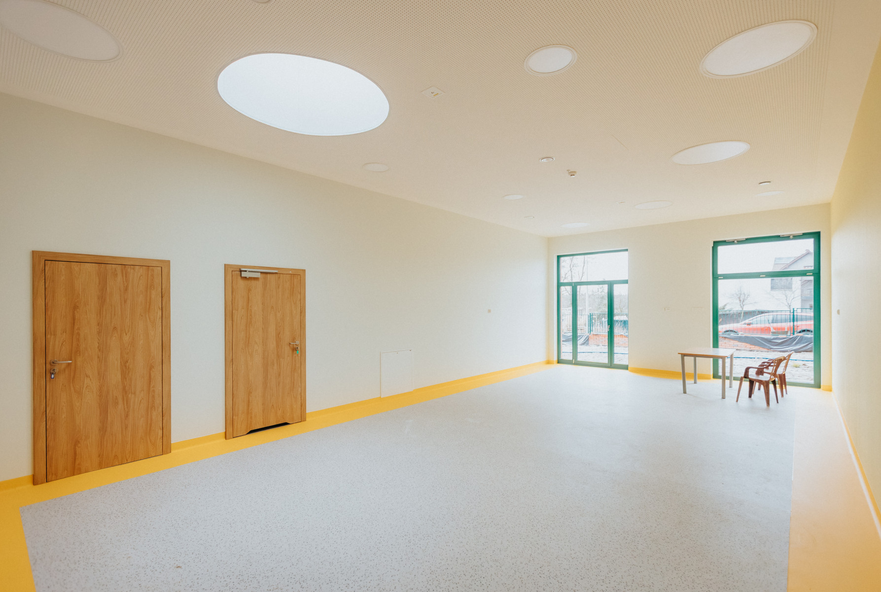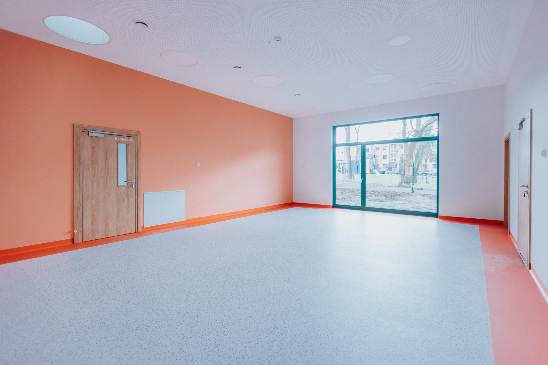 W obiekcie powstało 46 miejsc dla najmłodszych mieszkańców Bierunia (dzieci w wieku żłobkowym) oraz 86 miejsc dla mieszkańców nieco starszych (przedszkolaków). Wybudowanych zostało 6 sal - 2 na maluchów w ramach Żłobka Miejskiego ERGUŚ 4 dla przedszkolaków z Przedszkola nr 1. Są też biura, kuchnia, pomieszczenia sanitarne, pomieszczenia techniczne i duża wspólna sala wielofunkcyjna.
