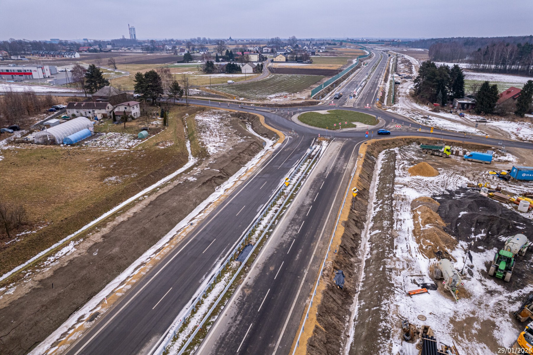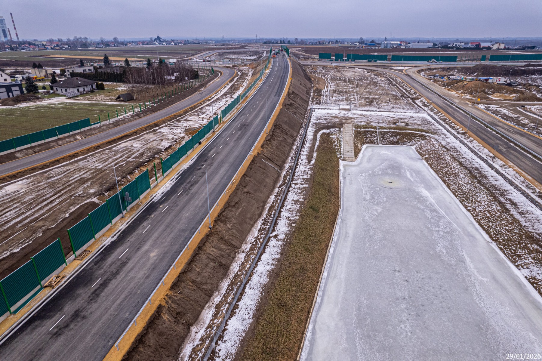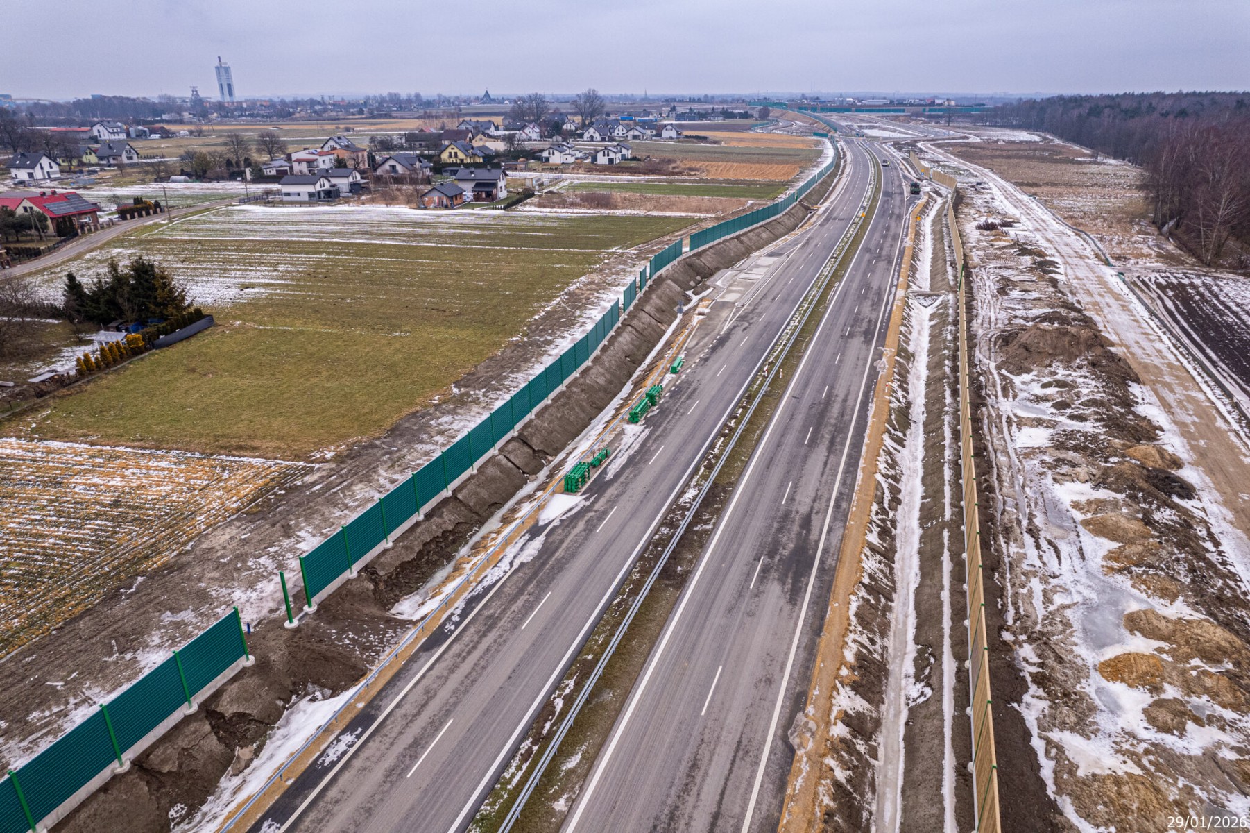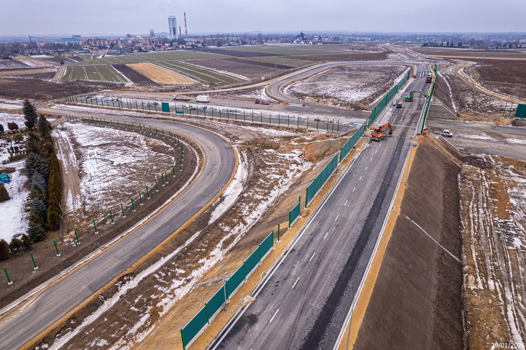 Budowa drogi S1 - Okolice Bijasowic i Zarzyny (z lotu ptaka) - 30 stycznia 2026 (1)