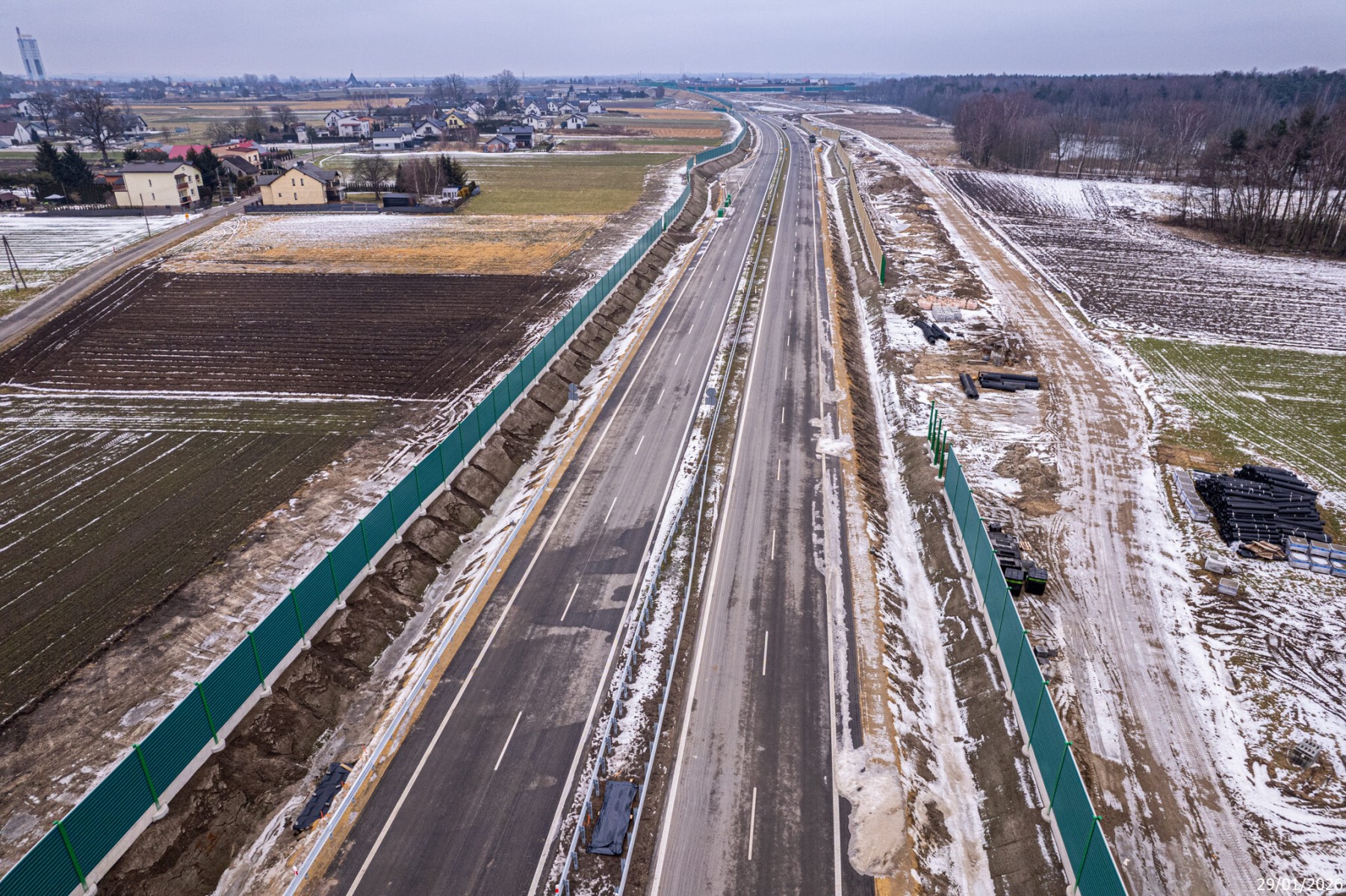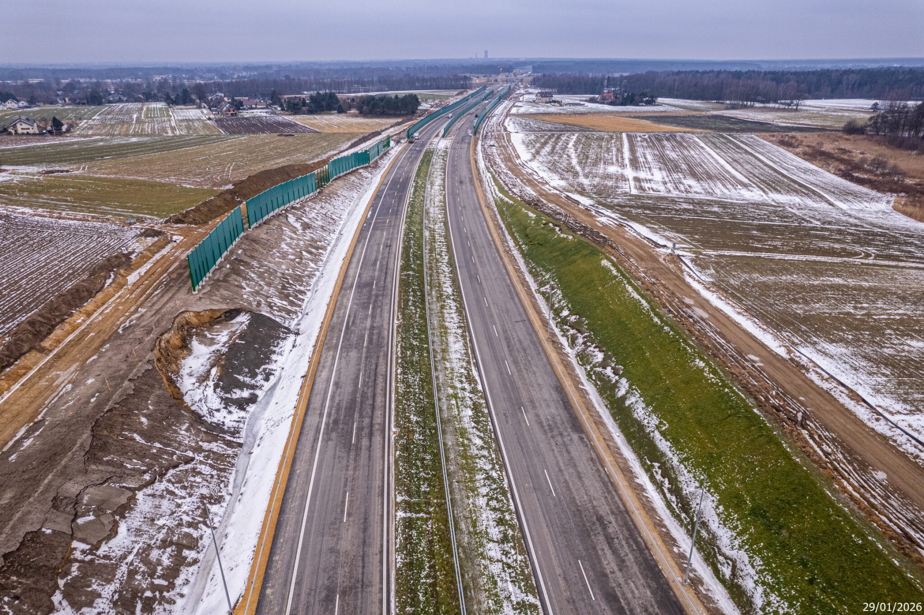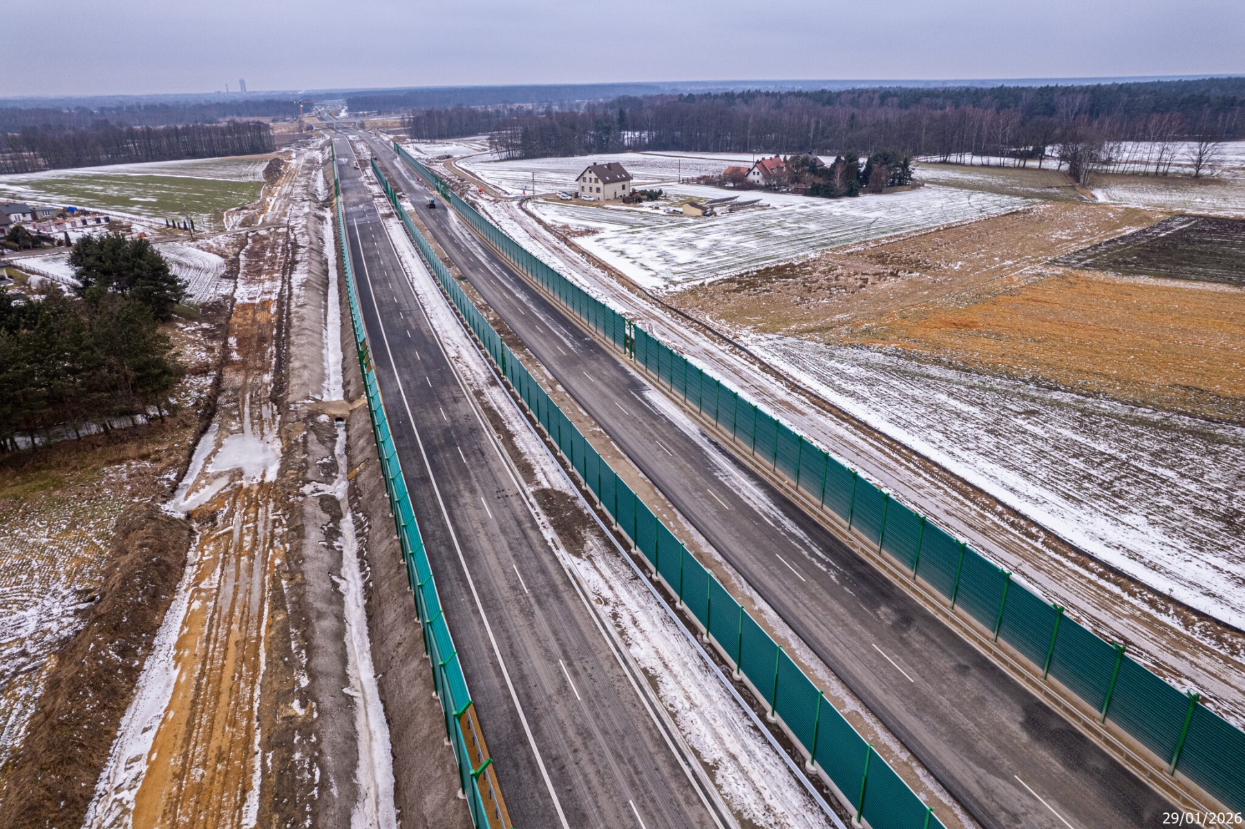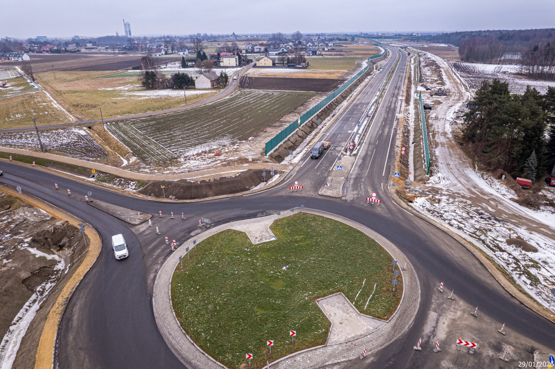 Budowa drogi S1 - Okolice Bijasowic i Zarzyny (z lotu ptaka) - 30 stycznia 2026 (1)