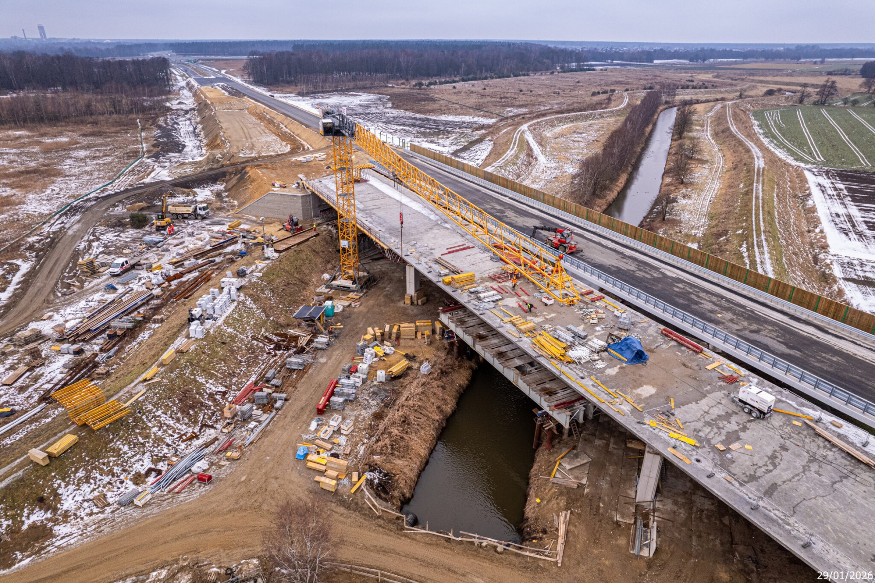 - Zimowe zdjęcia z placu budowy drogi S1 na trasie Kosztowy-węzeł Bieruń 2026-01-19