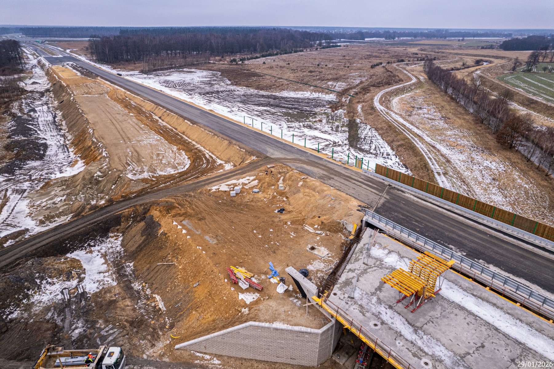Budowa drogi S1 - Okolice Bijasowic i Zarzyny (z lotu ptaka) - 30 stycznia 2026 (2)