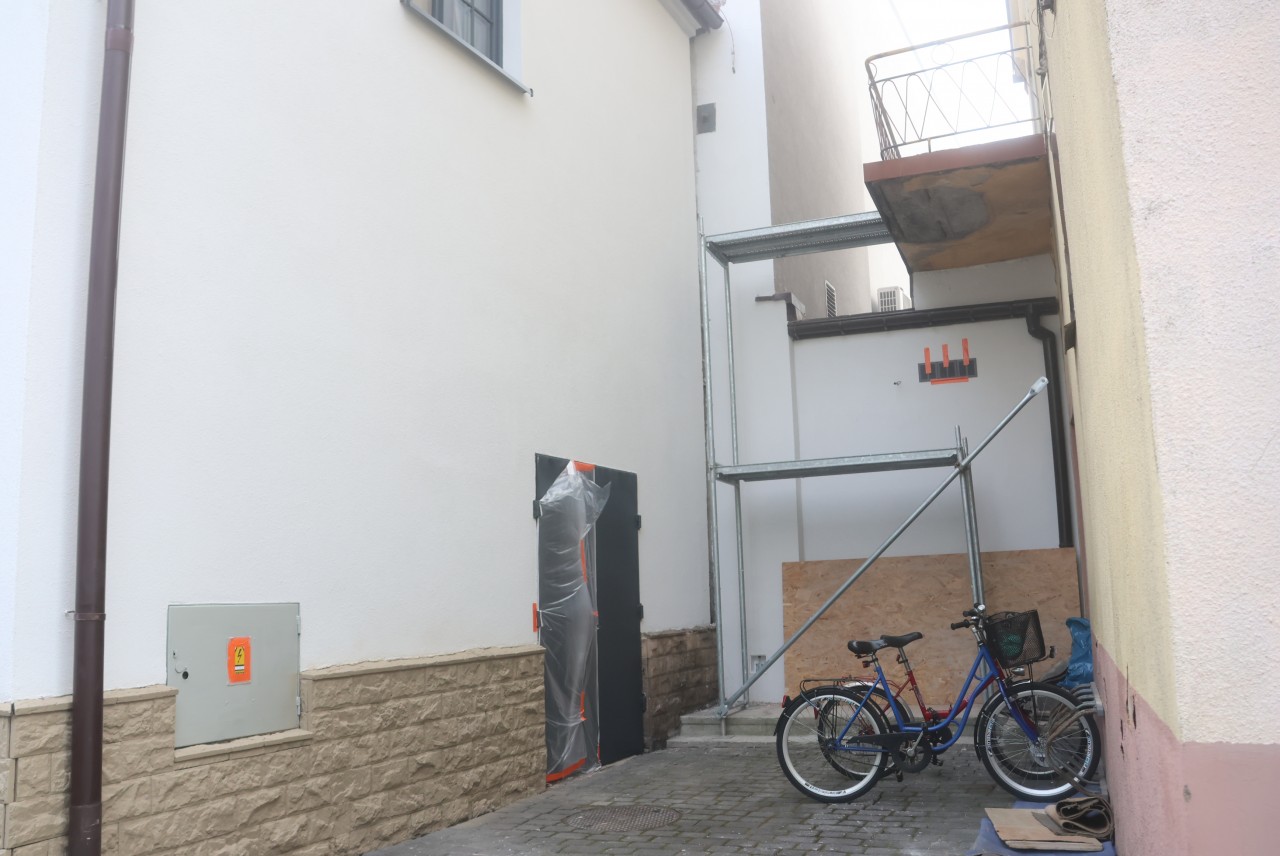 - Zamurowanie otworu drzwiowego od ul. Adama (na elewacji bocznej północnej przy narożniku budynku od ul. Spiżowej);