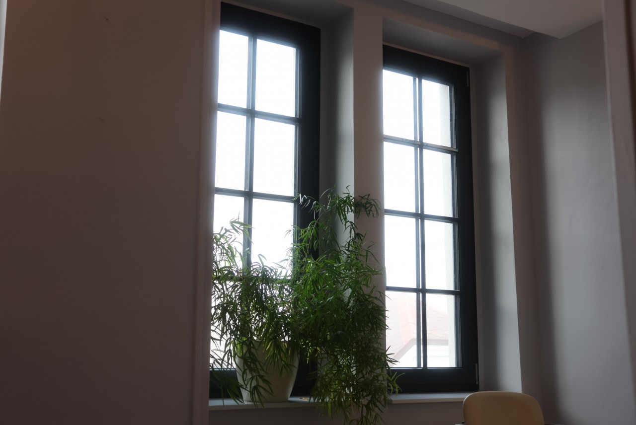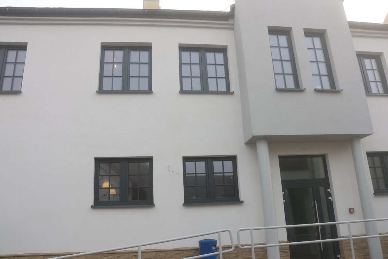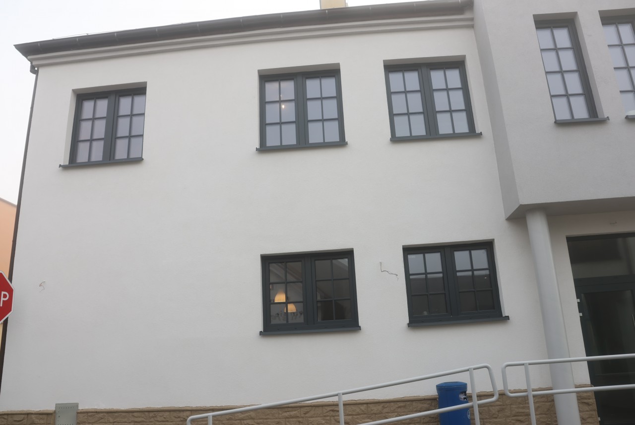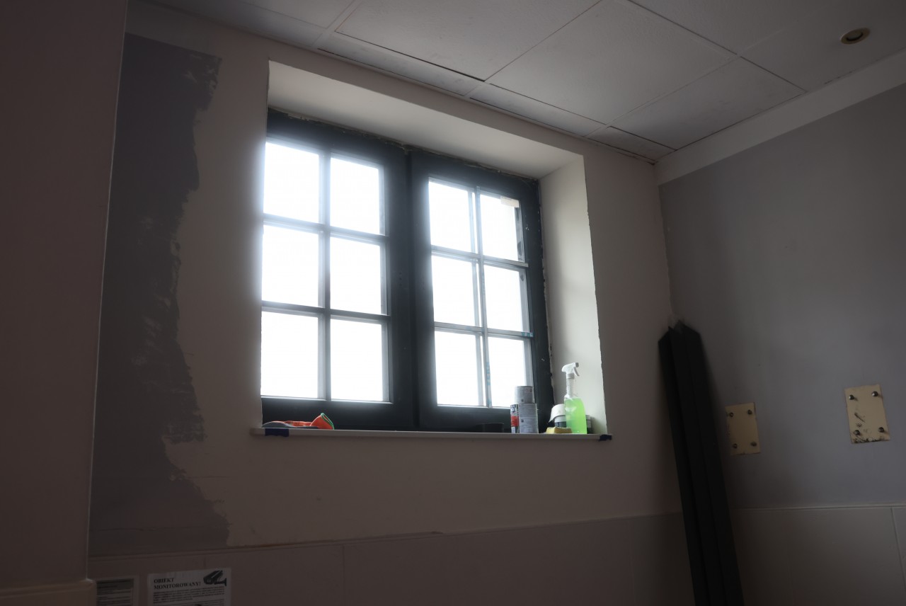 - Wymiana zewnętrznej stolarki okiennej od ul. Spiżowej (elewacja frontowa zachodnia i boczna południowa), i ul. Adama (elewacja boczna północna);
