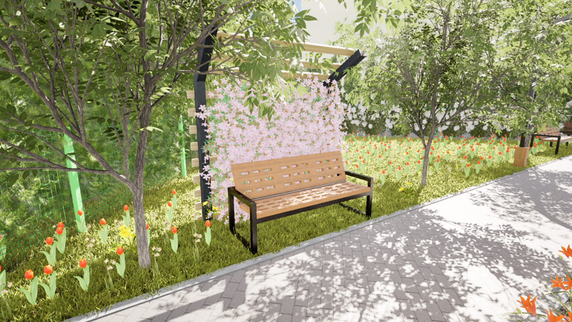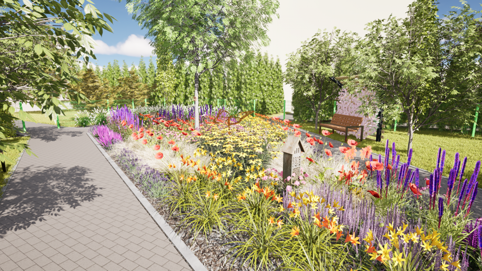 - Nowa zieleń - 16 drzew, rabaty bylinowe, krzewy, rośliny cebulowe i trawniki, które dodadzą kolorów od wczesnej wiosny aż do późnej jesieni.