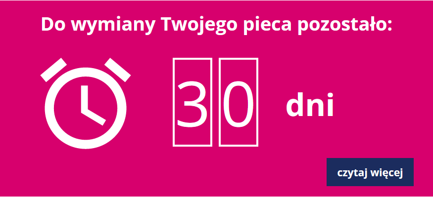 Aktualności 1 Grudnia 202130 dni - dokładnie tyle czasu jeszcze zostało na wymianę kotłów bezklasowych lub starszych niż 10 lat od daty ich produkcji (według stanu na dzień 1 września 2017 r.). Przypominamy, że na mocy Uchwały antysmogowej województwa śląskiego, używanie po 31 grudnia (a więc od 1 stycznia 2022 roku) takich kotłów jest niezgodne z prawem!