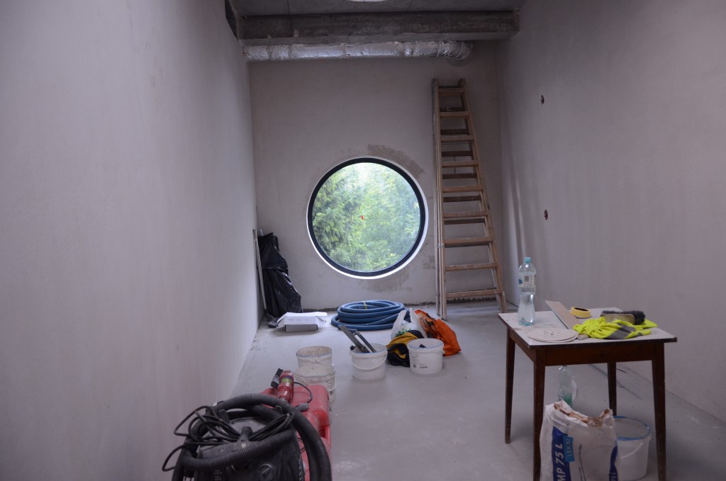 - Trwają roboty wykończeniowe wewnątrz obiektu: układanie płytek oraz malowanie ścian i sufitów