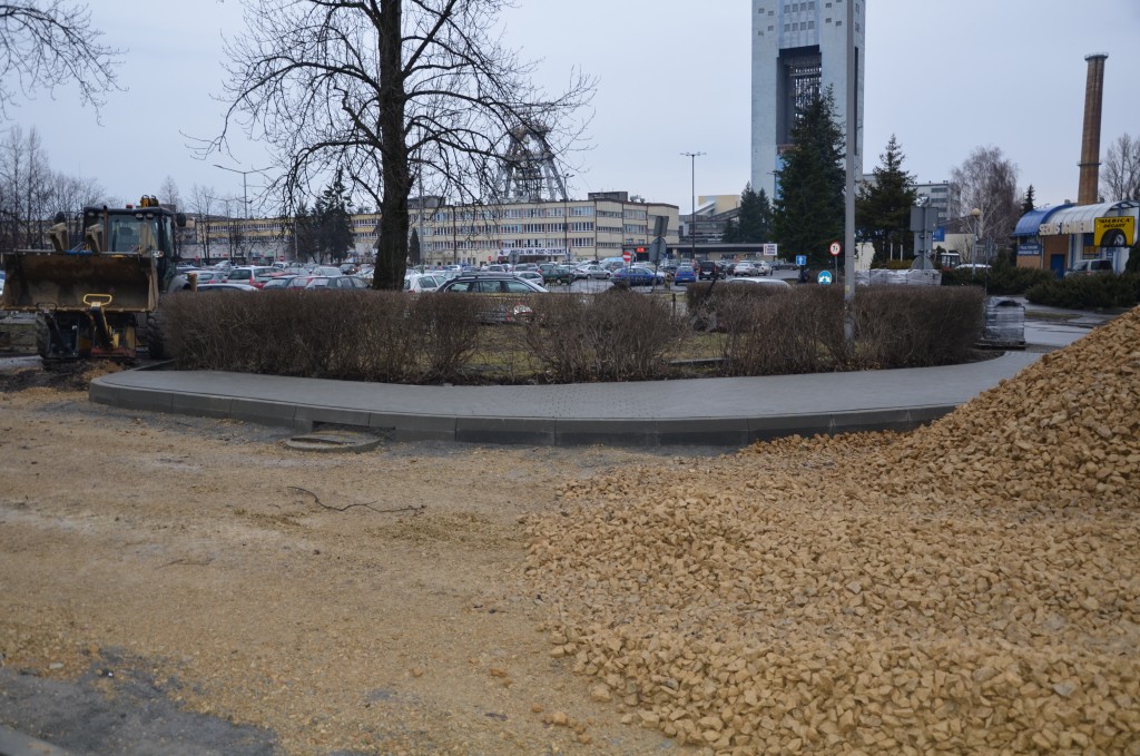 - Wykonywana jest nawierzchnia chodnika i zatok parkingowych z kostki betonowej