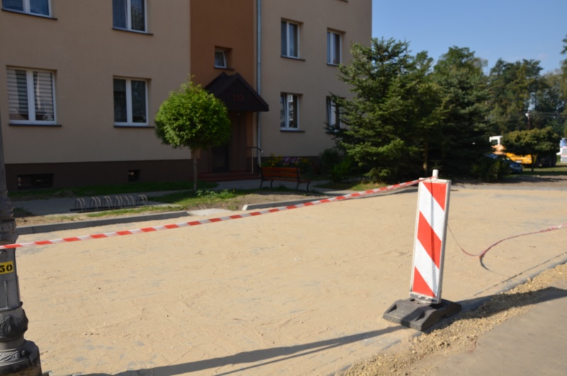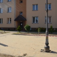 Przed blokiem nr: 113-115 parking jest już prawie gotowy, teraz prace przesunęły się przed kolejny budynek. Nowe miejsca parkingowe budowane są z kostki betonowej oraz z płyt ażurowych, chodnik natomiast wykonany będzie z kostki betonowej.