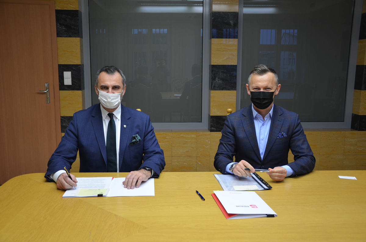 Umowę podpisali: Burmistrz Krystian Grzesica