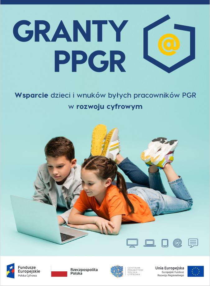 - Sprzęt zakupiony został ze środków Unii Europejskiej w ramach projektu: „Wsparcie dzieci z rodzin pegeerowskich w rozwoju cyfrowym - Granty PPGR”. Wartość dofinansowania to 52 500,00 zł.