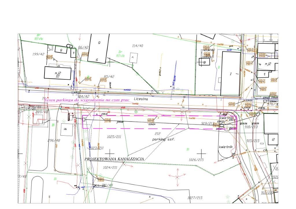 Etap I obejmuje roboty ziemne na parkingu przy ulicy Licealnej (koło Galenu). W związku z tym, w dniach od 5 listopada 2019 r. do 16 listopada 2019 r. część parkingu przy ul. Licealnej będzie wyłączona z użytkowania.