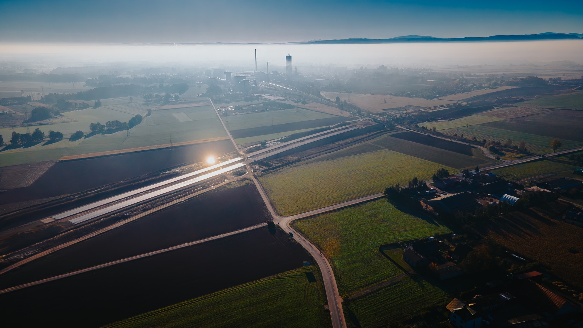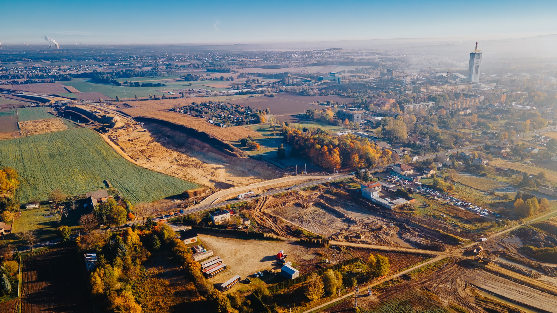 Budowa drogi S1 - Kosztowy - Bieruń - 21 października 2025 (zdjęcia z lotu ptaka)
