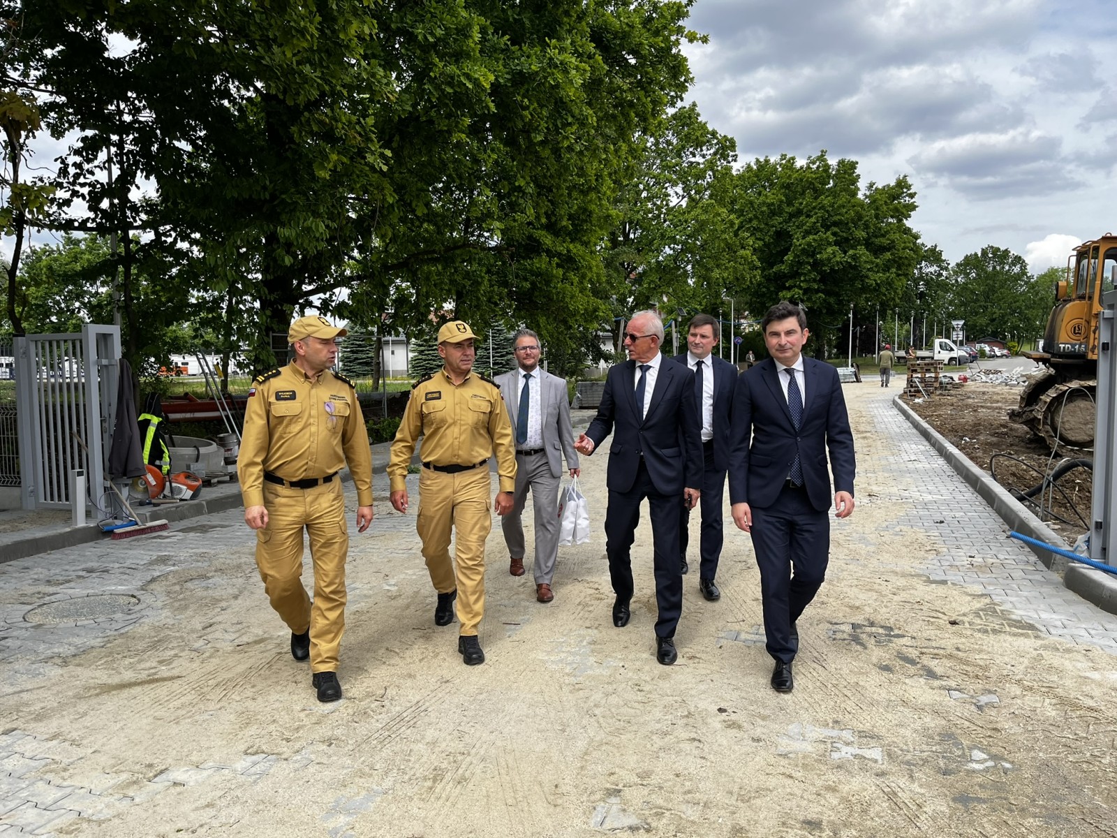 W spotkaniu uczestniczyli również Łukasz Odelga - Starosta Bieruńsko-Lędziński, Sebastian Macioł - Burmistrz Bierunia oraz st, bryg. Wojciech Rapka - Komendant Miejski PSP w Tychach, st. bryg. Arkadiusz Krzemiński - Zastępca Śląskiego Komendanta Wojewódzkiego PSP. Wizyta była okazją do sprawdzenia postępów realizacji oraz omówienia szczegółów inwestycji, której otwarcie już w lipcu.