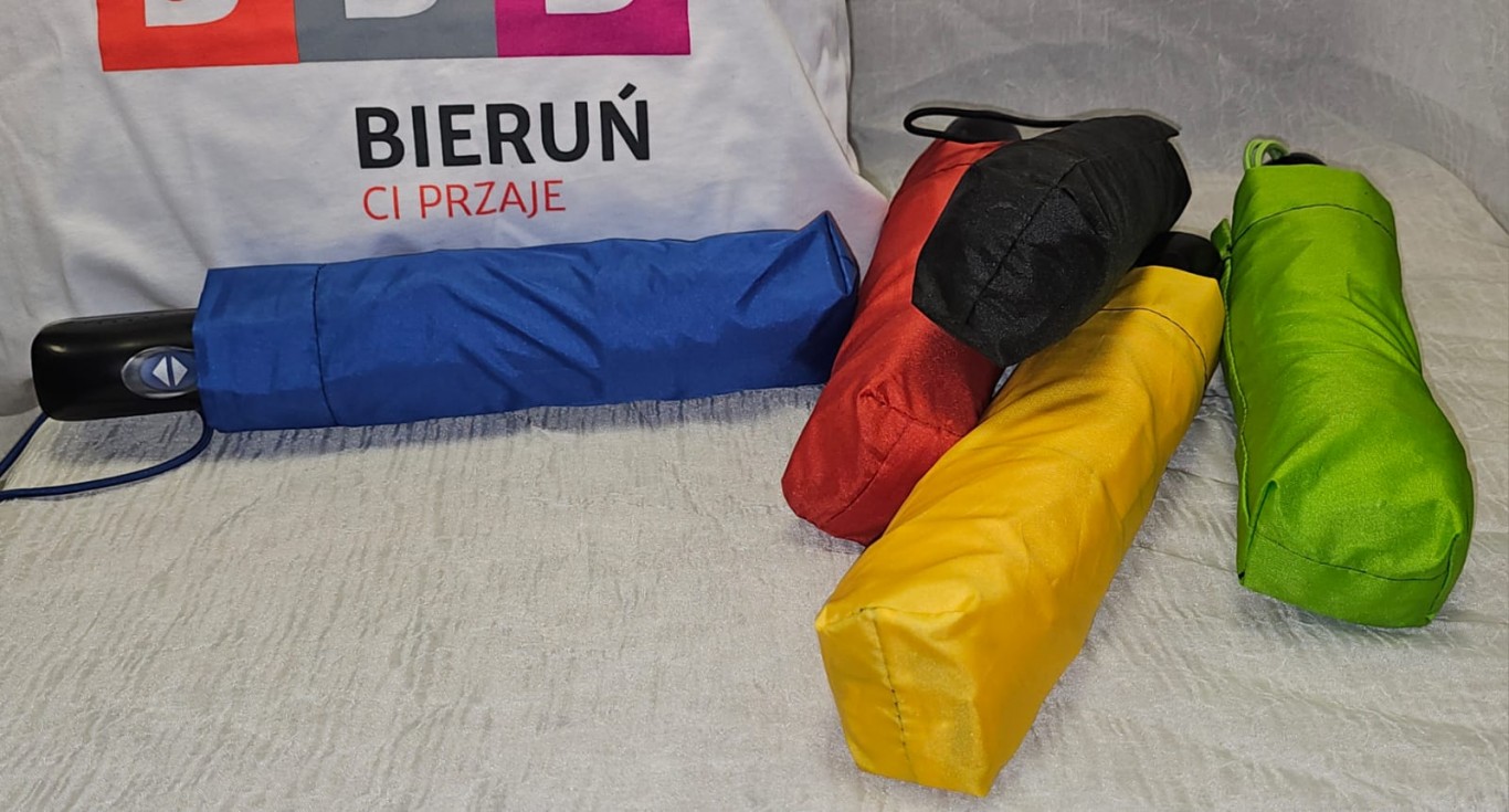 - parasol składany automatycznie (kolorowy) z logo Bierunia - 40,00 zł