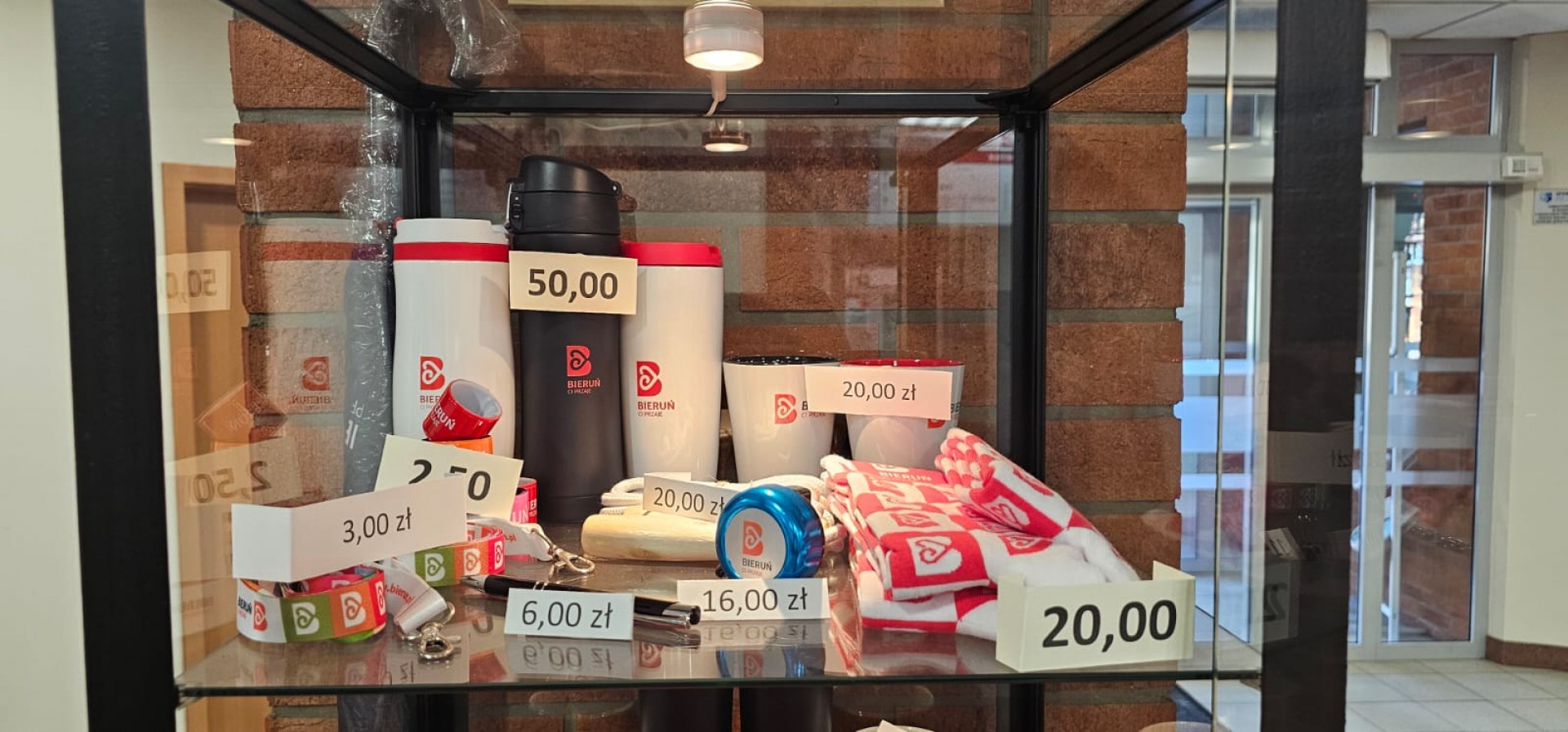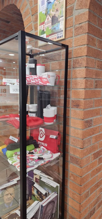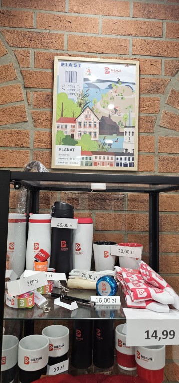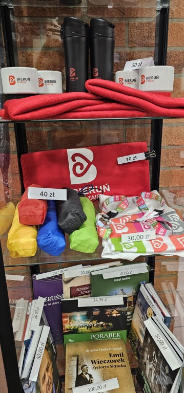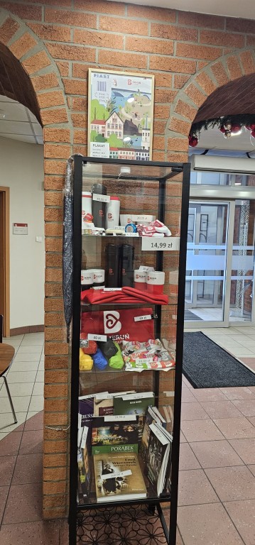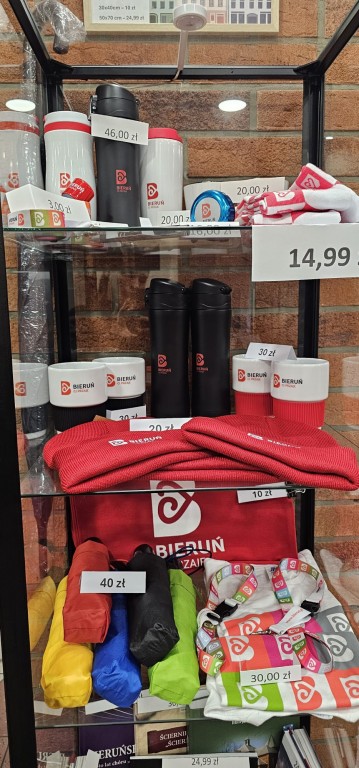 Gadżety miejskie dostępne w gablotce sprzedażowej