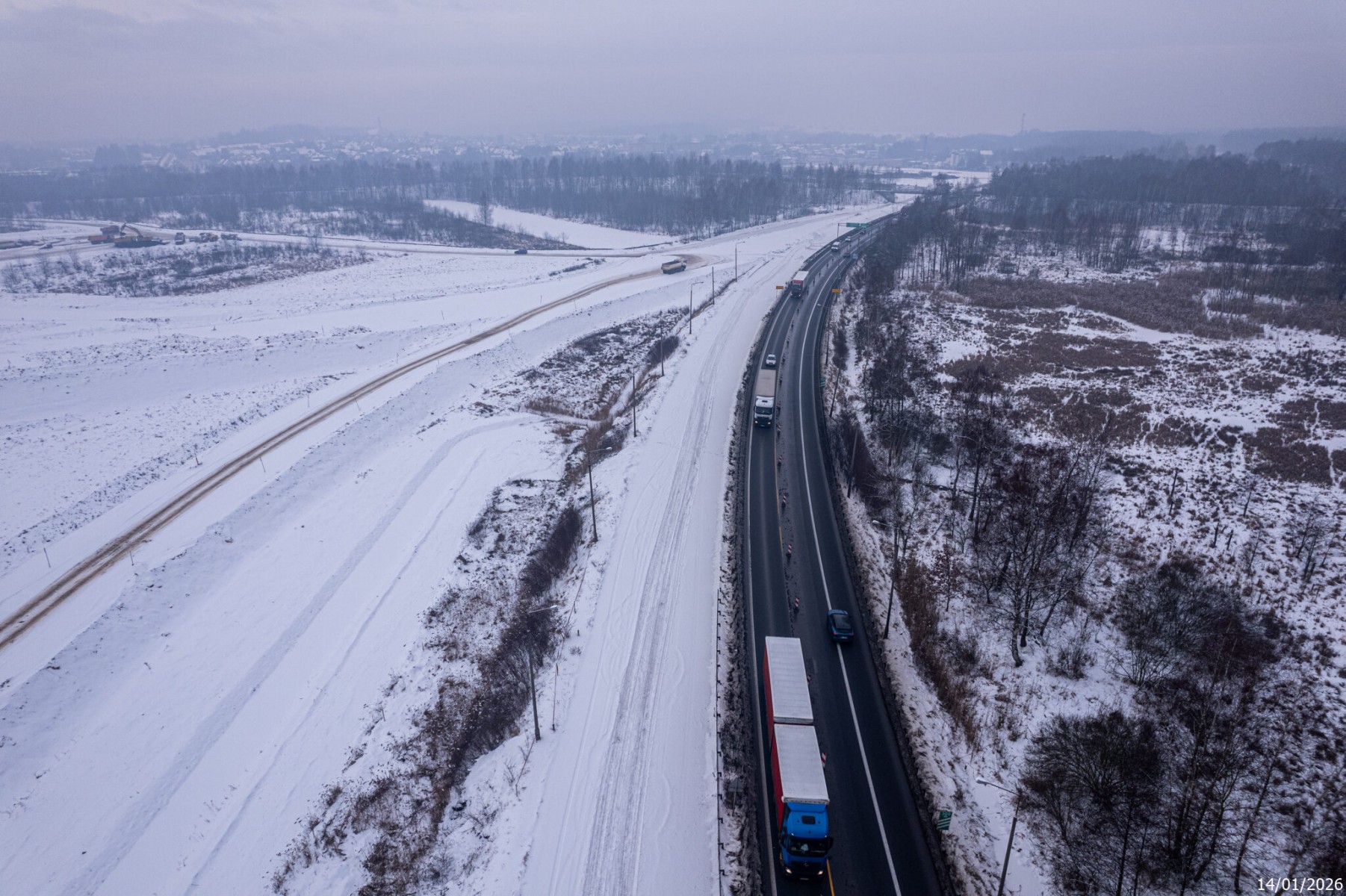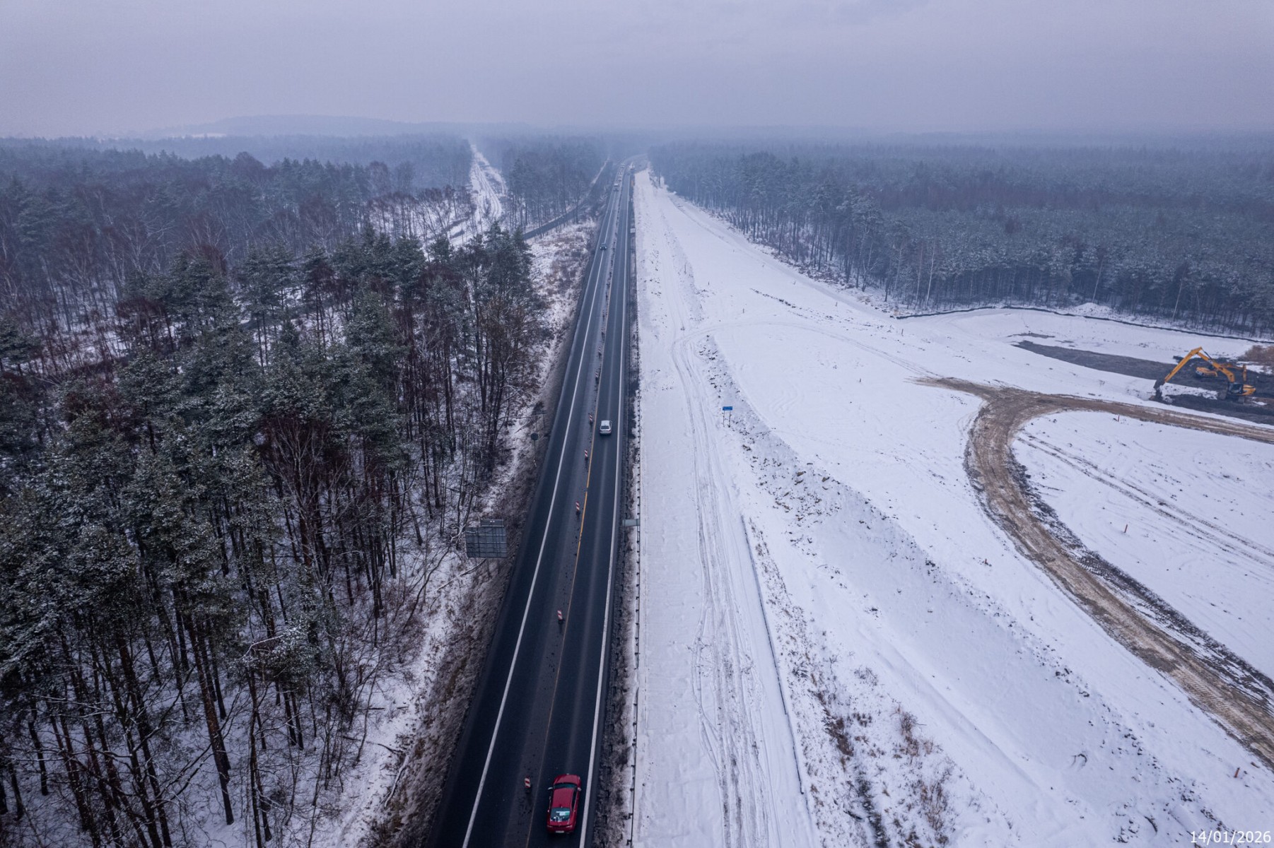 Budowa drogi S1 - Kosztowy - Bieruń - styczeń 2026 (zdjęcia z lotu ptaka) (1)