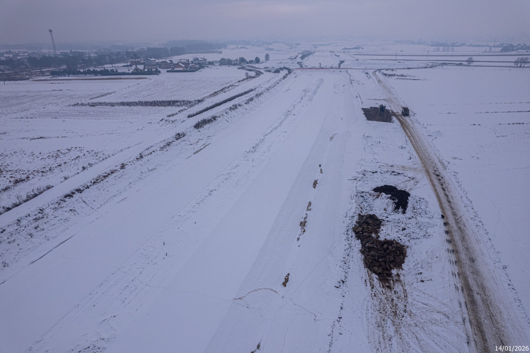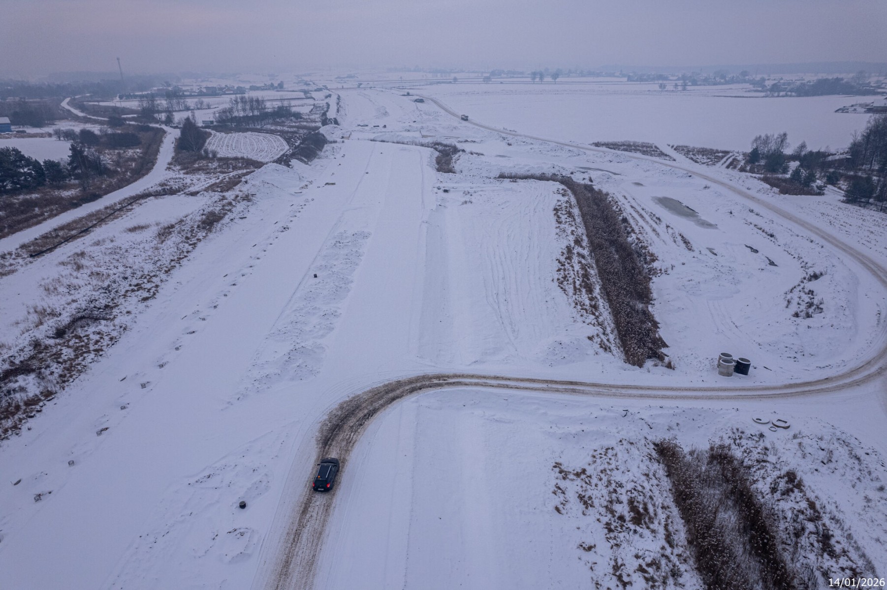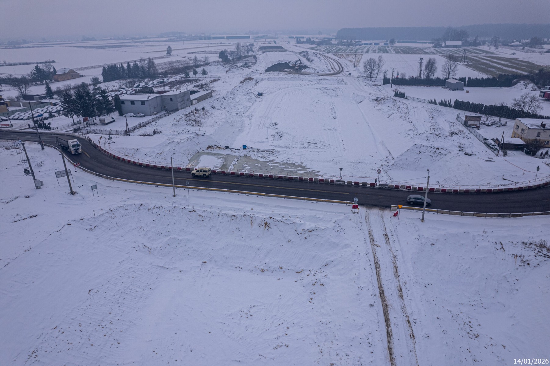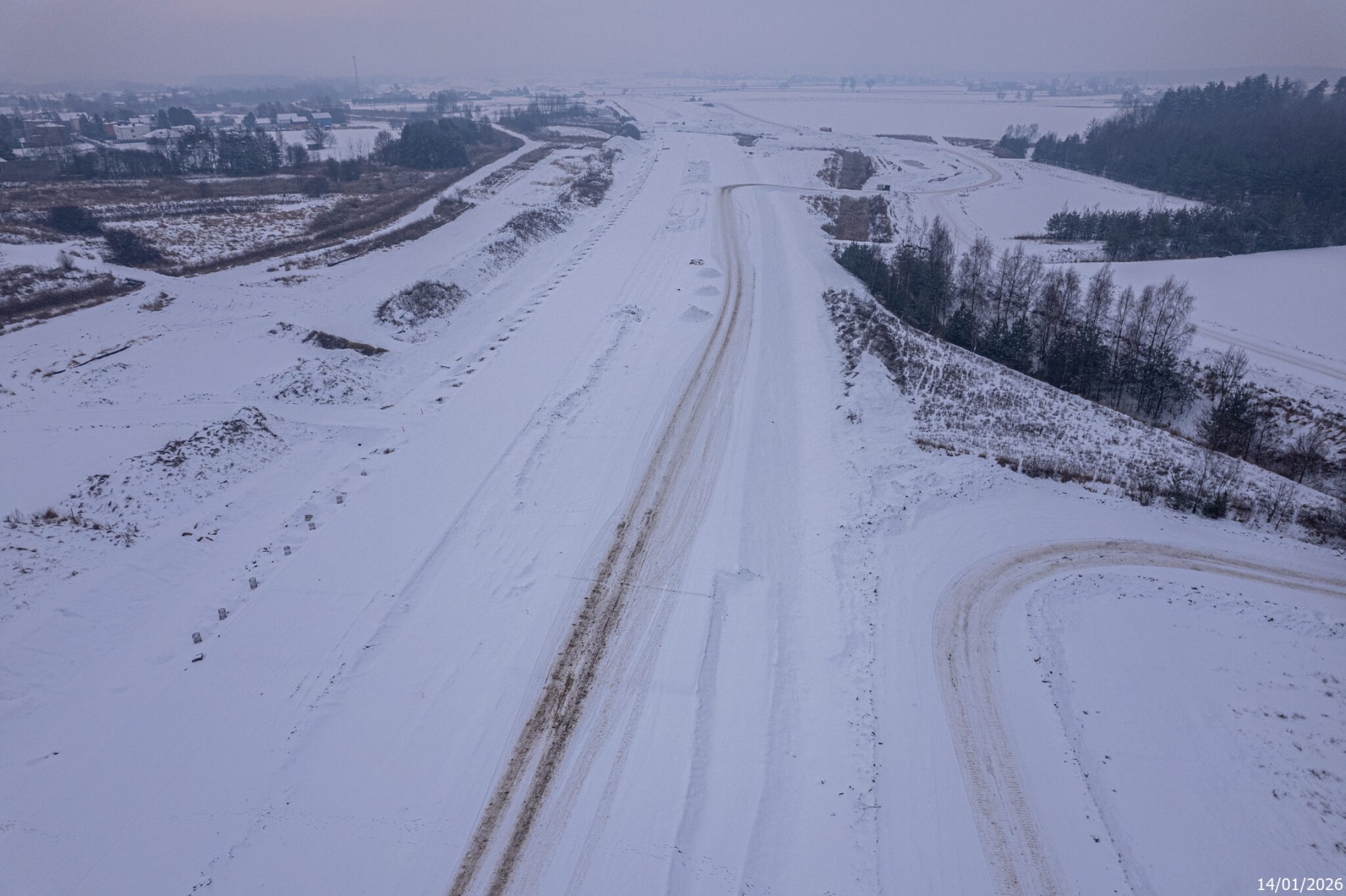 Budowa drogi S1 - Kosztowy - Bieruń - styczeń 2026 (zdjęcia z lotu ptaka) (2)