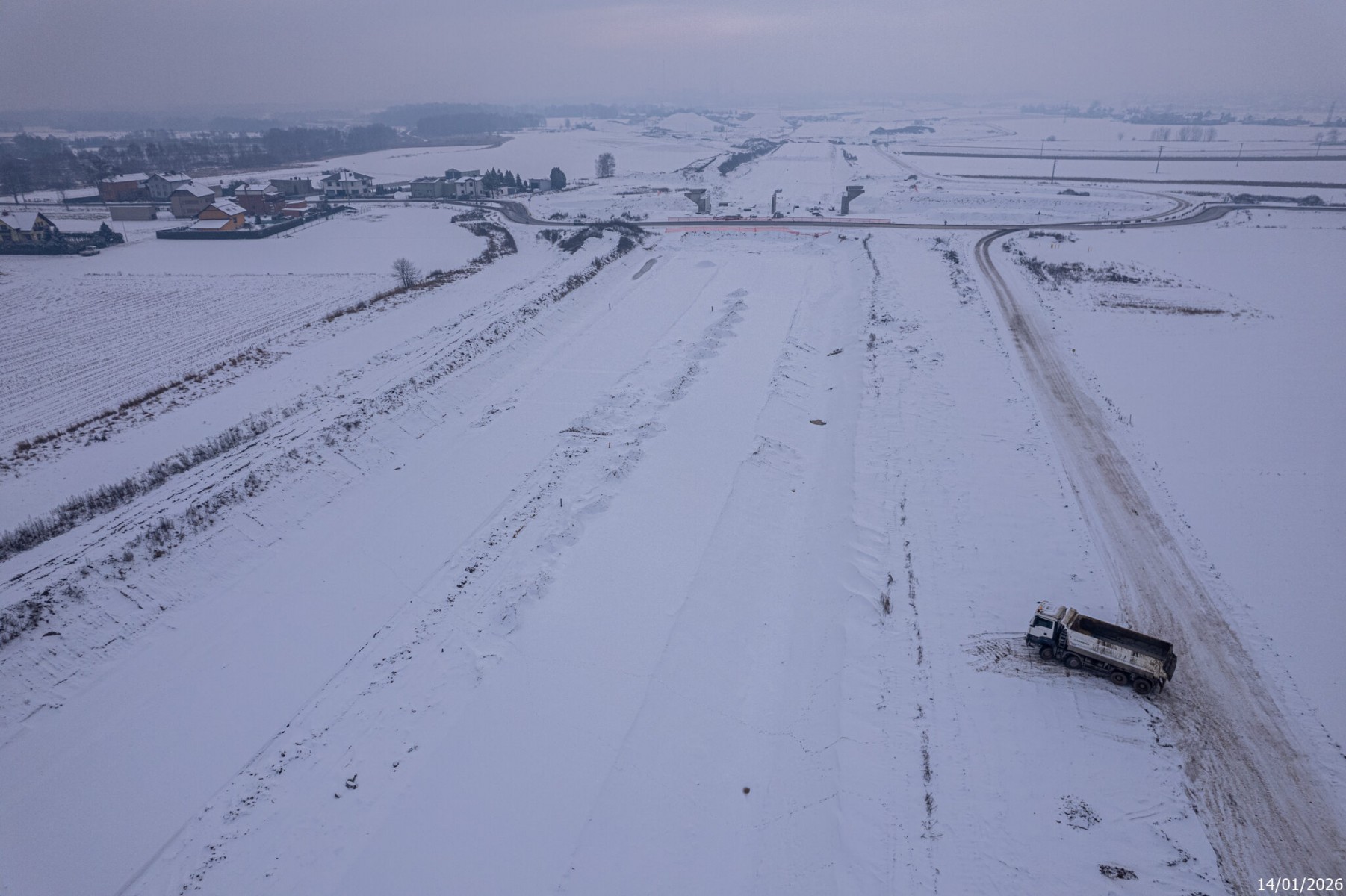 Budowa drogi S1 - Kosztowy - Bieruń - styczeń 2026 (zdjęcia z lotu ptaka) (11)
