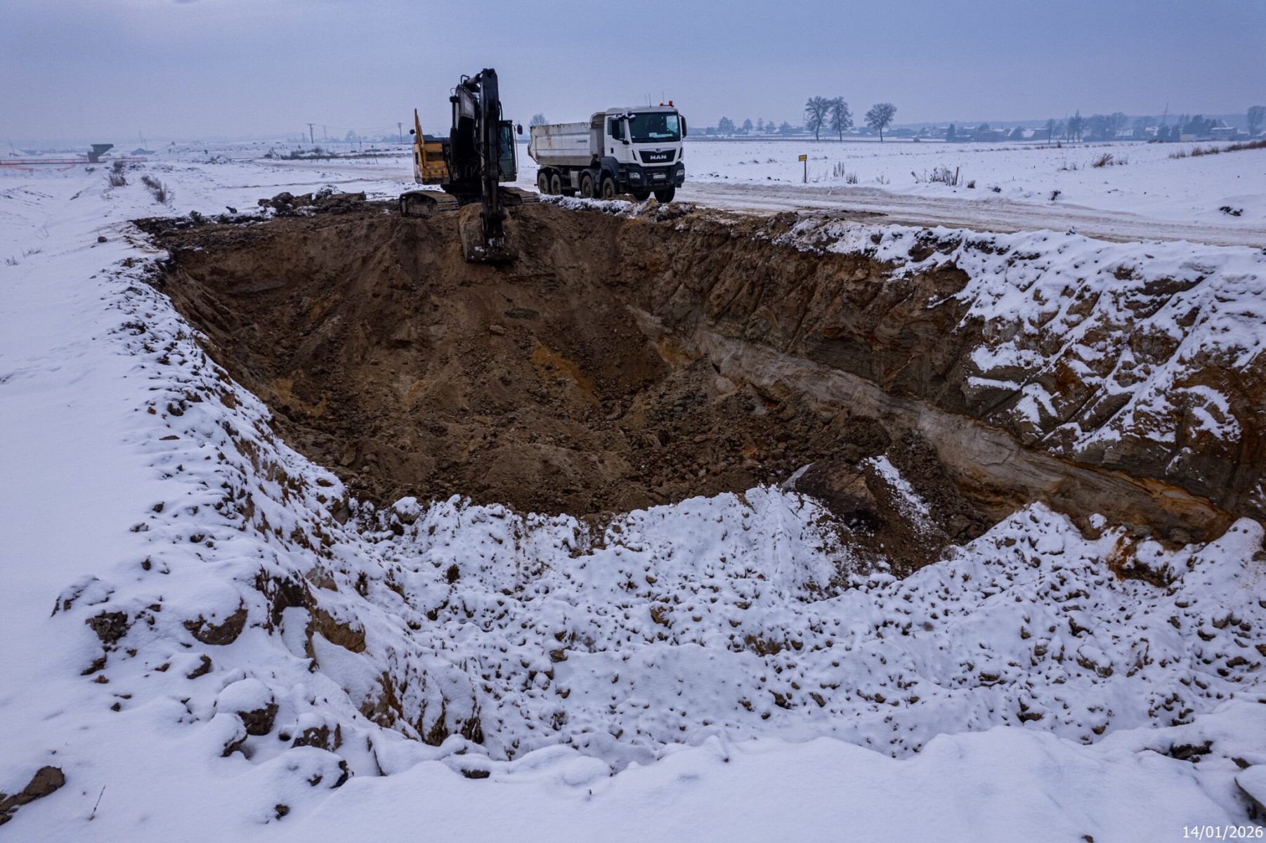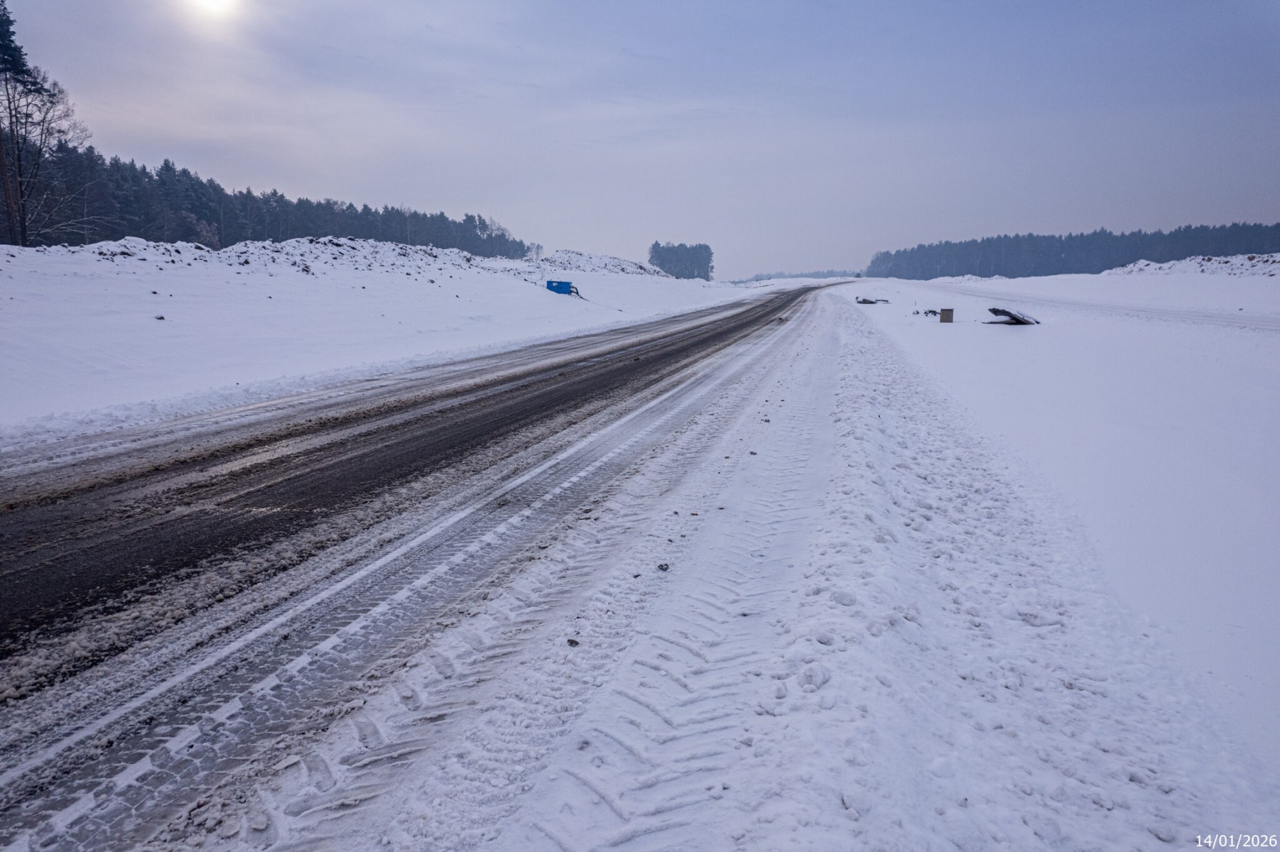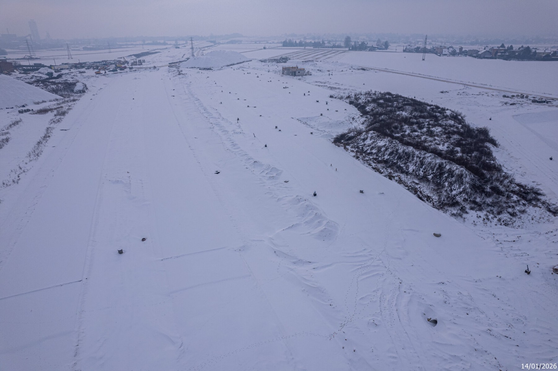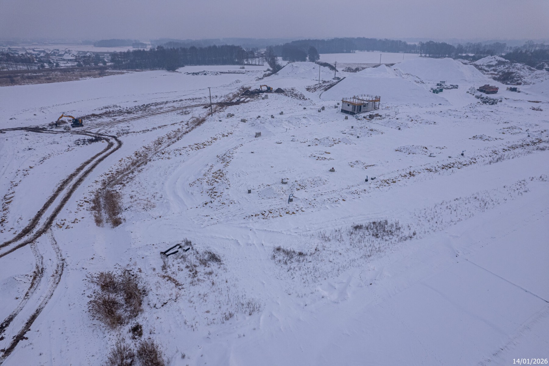 Aktualności 19 Stycznia 2026Poniżej prezentujemy "zimowe" zdjęcia z placu budowy drogi ekspresowej S1 na trasie Kosztowy w Mysłowicach, przez Imielin, Lędziny, aż do węzła Bieruń. Mrozy i śnieg nie pozwalają przyśpieszyć, ale te prace, które są możliwe, realizowane są nieprzerwanie. Przypomnijmy, że termin oddania tego odcinka to początek 2027 roku. Wartość zadania to 490 milionów złotych. Fotki wykonane zostały na zlecenie inwestora - Generalnej Dyrekcji Dróg Krajowych i Autostrad 14 stycznia 2026 roku.