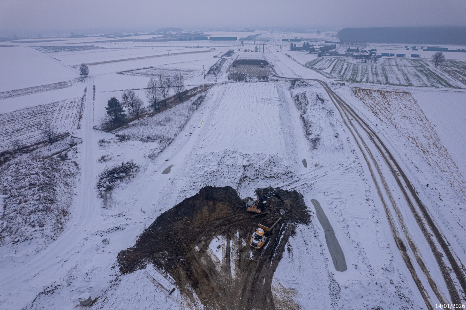 Budowa drogi S1 - Kosztowy - Bieruń - styczeń 2026 (zdjęcia z lotu ptaka) (8)